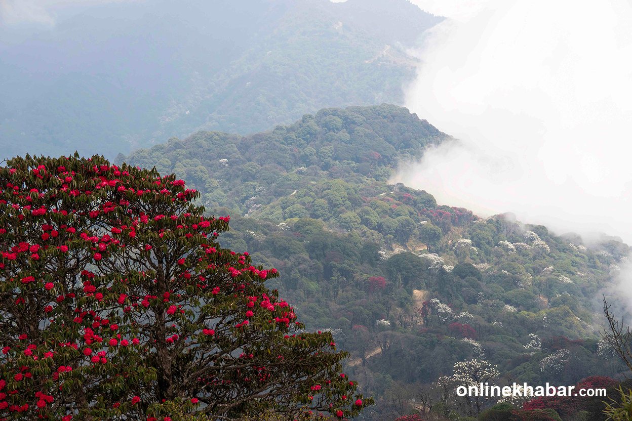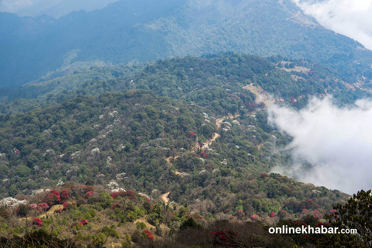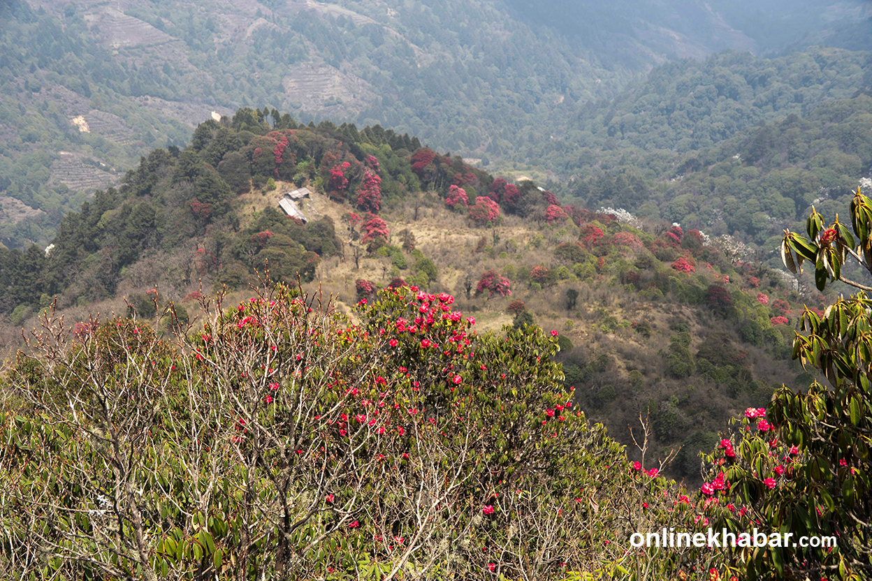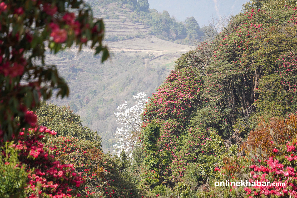 Panchthar As soon as you reach the hill of Chintapu while climbing up Panchthar, you can see a fascinating sight – a forest full of colorful gurans. Looking down, red, white, blue and pink colors are scattered in the green forest. The scene is even more charming when the strong wind that blows sometimes along with the midday sun shakes the trees.