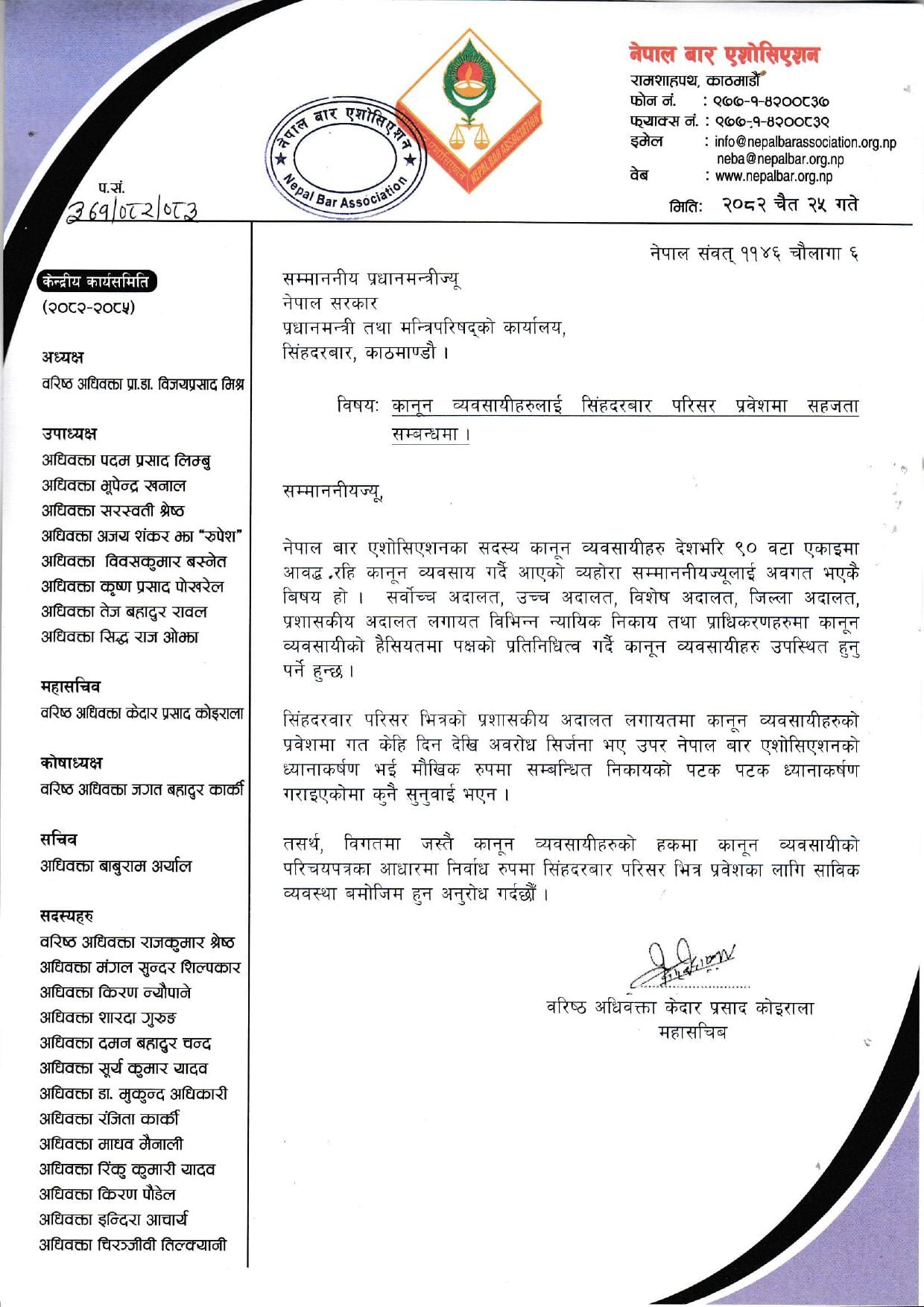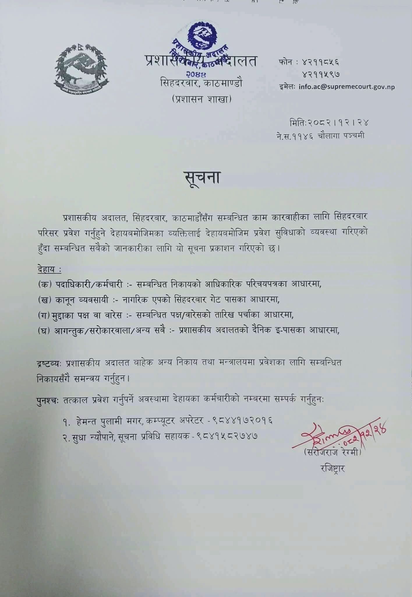 Lawyers must get a pass from the citizen app when entering the Sinh Darbar — rohanmandal.com.np